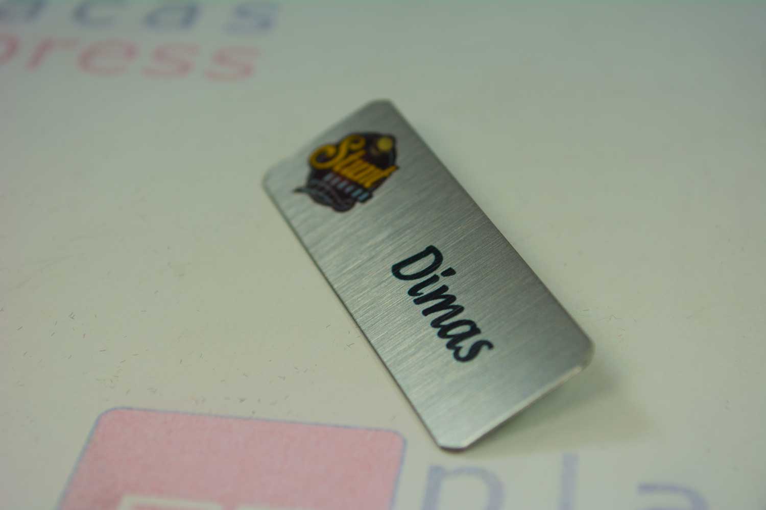 Crachá de aço inox fixados por imã ou alfinete, para escritórios, consultórios, lojas em geral, etc...